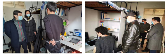 副校长施大宁、学院党委书记刘建成,院长孙建红,党委副书记王艳,前往学生宿舍,关心学生新学期学习生活。